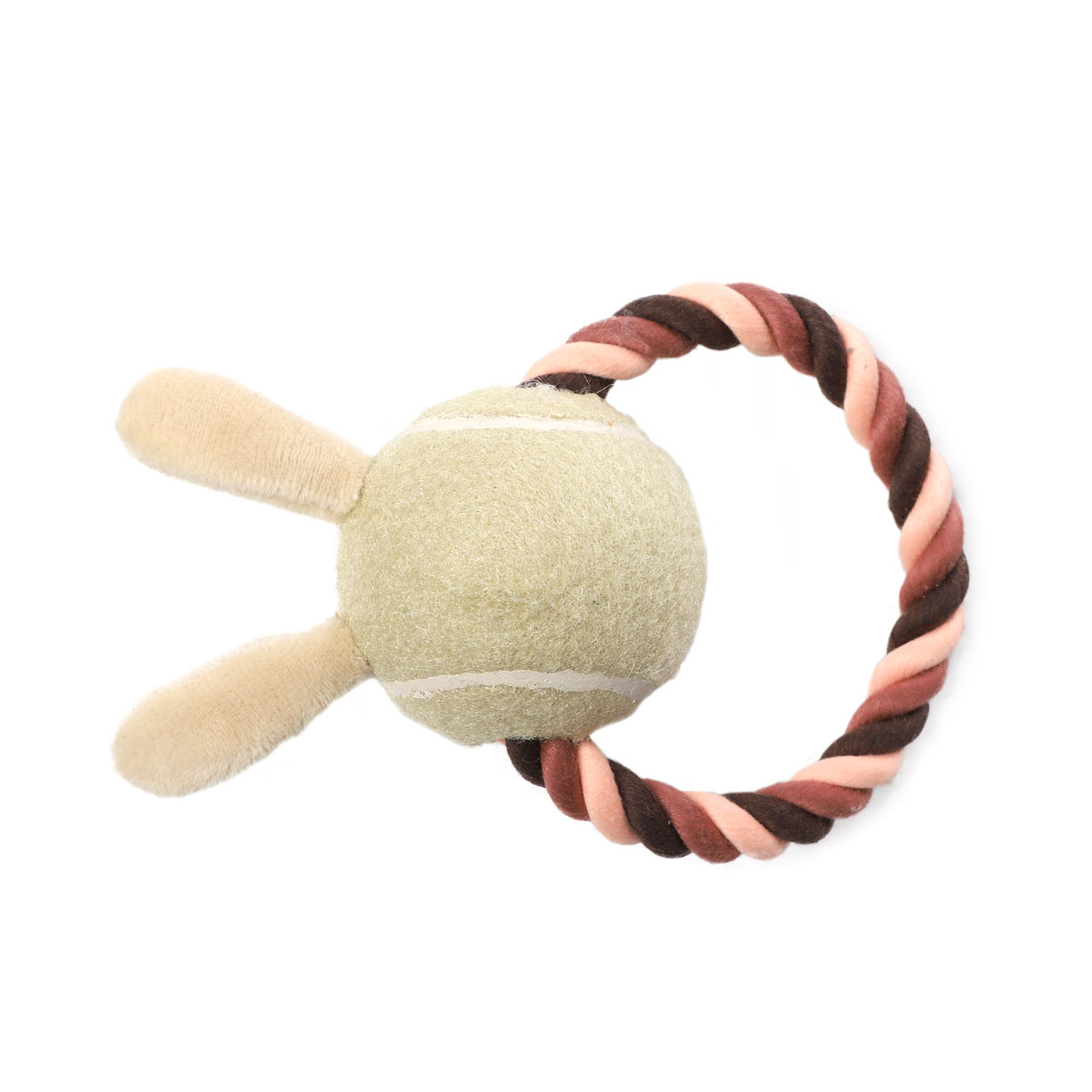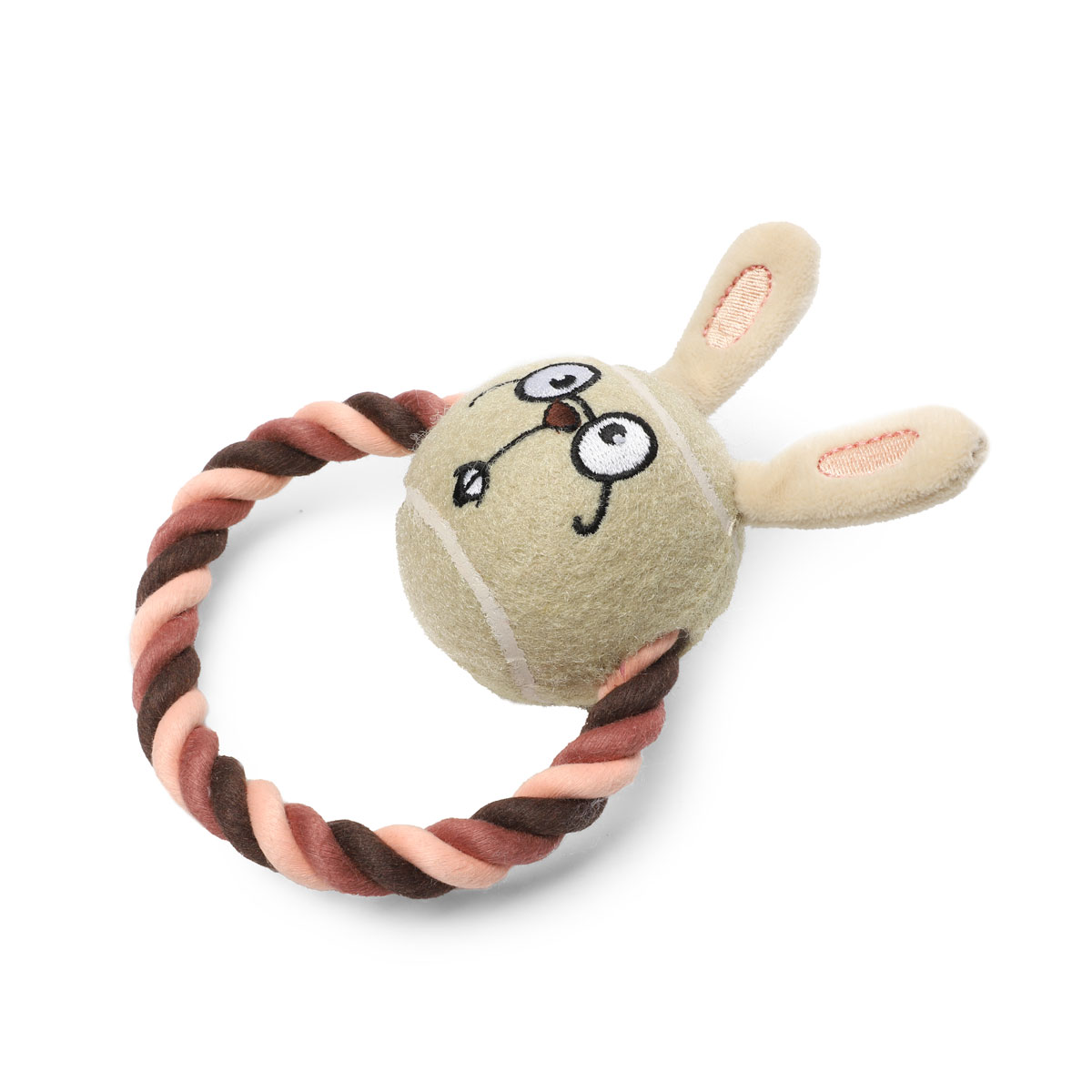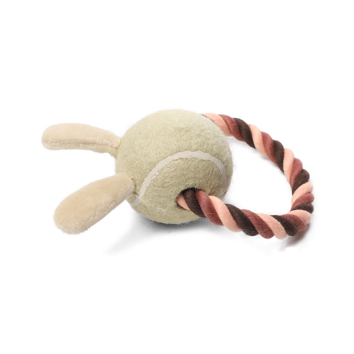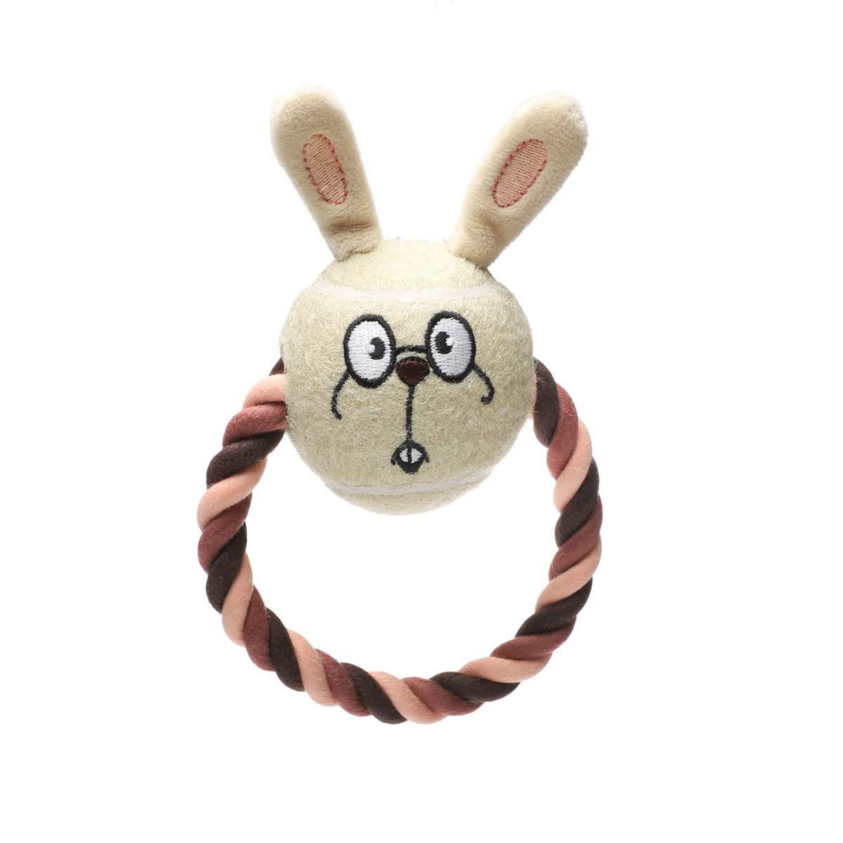 Эта забавная мягкая игрушка для собак в виде всеми любимого героя известного мультфильма изготовлена из теннисной резины высокого качества. Игрушка оснащена верёвочным кольцом для удобства перетяжки. Такая игрушка доставит огромную радость и питомцам, и их заботливым владельцам. Цвет изделия: бежевый с коричневым и розовым. Размер изделия: диаметр мяча - 65мм, длина "с ушами" и верёвочным кольцом - 160мм, длина "ушей" - 45мм, диаметр верёвочного кольца - 105-110мм.