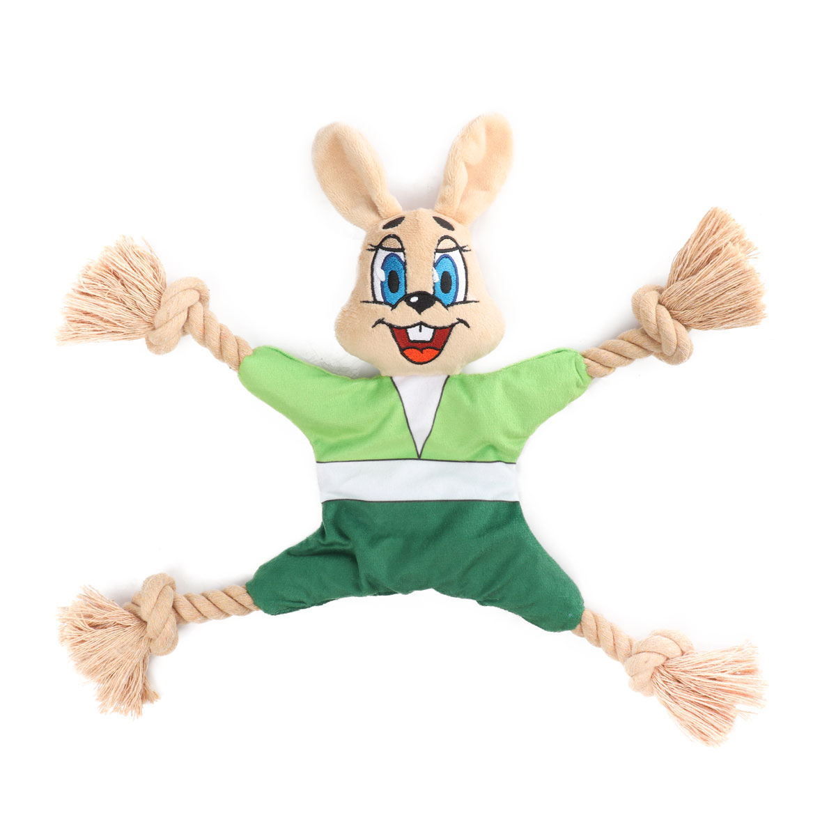 Игрушка для собак по мотивам любимого мультфильма с шуршалкой и пищалкой внутри станет увлекательным развлечением для вашего питомца. Благодаря вшитым веревкам, зайчика удобно таскать в зубах и прятать в самых укромных уголках. Игрушка отлично подойдет для совместных и одиночных игр. Любимый сказочный персонаж и необычная упаковка изделия никого не оставят равнодушным! Цвет: зелёно - коричневый. Размер: 320*240*45мм.