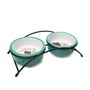 Этот функциональный комплект из двух универсальных круглых мисок на подставке выполнен из керамики высокого качества и отлично подходит для кошек и собак мелких пород. Такие миски идеальны как для воды, так и для корма разной консистенции. Изделие комфортно для питомца и легко моется под струей проточной воды с использованием моющих бытовых средств. А эффектный дизайн стилизованной под ковку подставки позволит ей стать украшением любого интерьера. Цвет: белый. Размер: d дна - 112мм; d в верхней части - 125мм; высота - 45мм. Размер подставки - 280*135*65мм. Объем 2*0,25л.