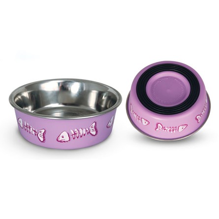 Стильная круглая миска из нержавеющей стали для кошек и собак небольших пород. Она идеально подходит как для воды, так и для корма разной консистенции. Миска комфортна для питомца и легко моется под струей проточной воды с использованием моющих бытовых средств. Прорезиненное основание обеспечивает максимальную устойчивость, препятствуя скольжению изделия во время использования, а оригинальный принт сделает такую миску украшением любого интерьера. Цвет изделия: фиолетовый. Объем: 0,15л. Размеры: 110*110*30мм.