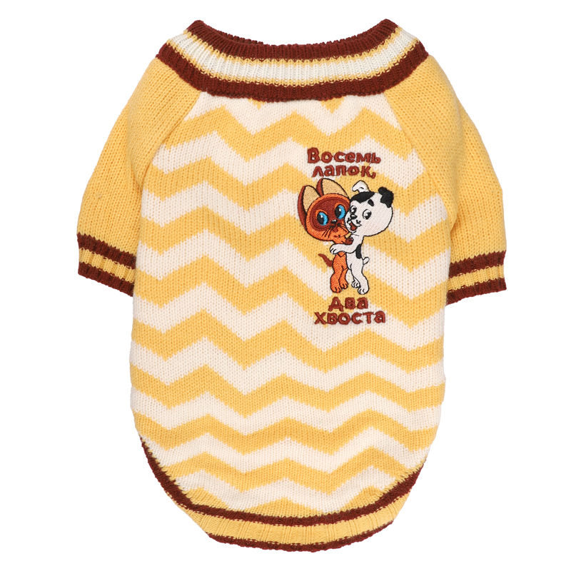 Свитер по мотивам любимого советского мультфильма - это удобный и функциональный аксессуар для собак, который просто незаменим в холодную погоду. Изделие защитит вашего питомца от ветра и согреет в непогоду, а универсальный фасон не будет стеснять движений питомца во время прогулки. Такой свитер со стильным дизайном станет украшением гардероба вашего питомца. Материал: акрил. Цвет: желто-белый. Размер: 25см (S).