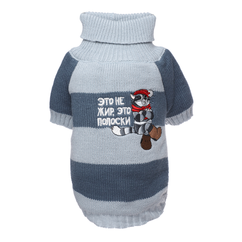 Свитер по мотивам любимого советского мультфильма - это удобный и функциональный аксессуар для собак, который просто незаменим в холодную погоду. Изделие защитит вашего питомца от ветра и согреет в непогоду, а универсальный фасон не будет стеснять движений питомца во время прогулки. Такой свитер со стильным дизайном станет украшением гардероба вашего питомца. Материал: акрил. Цвет: сине-голубой. Размер: 35см (L).