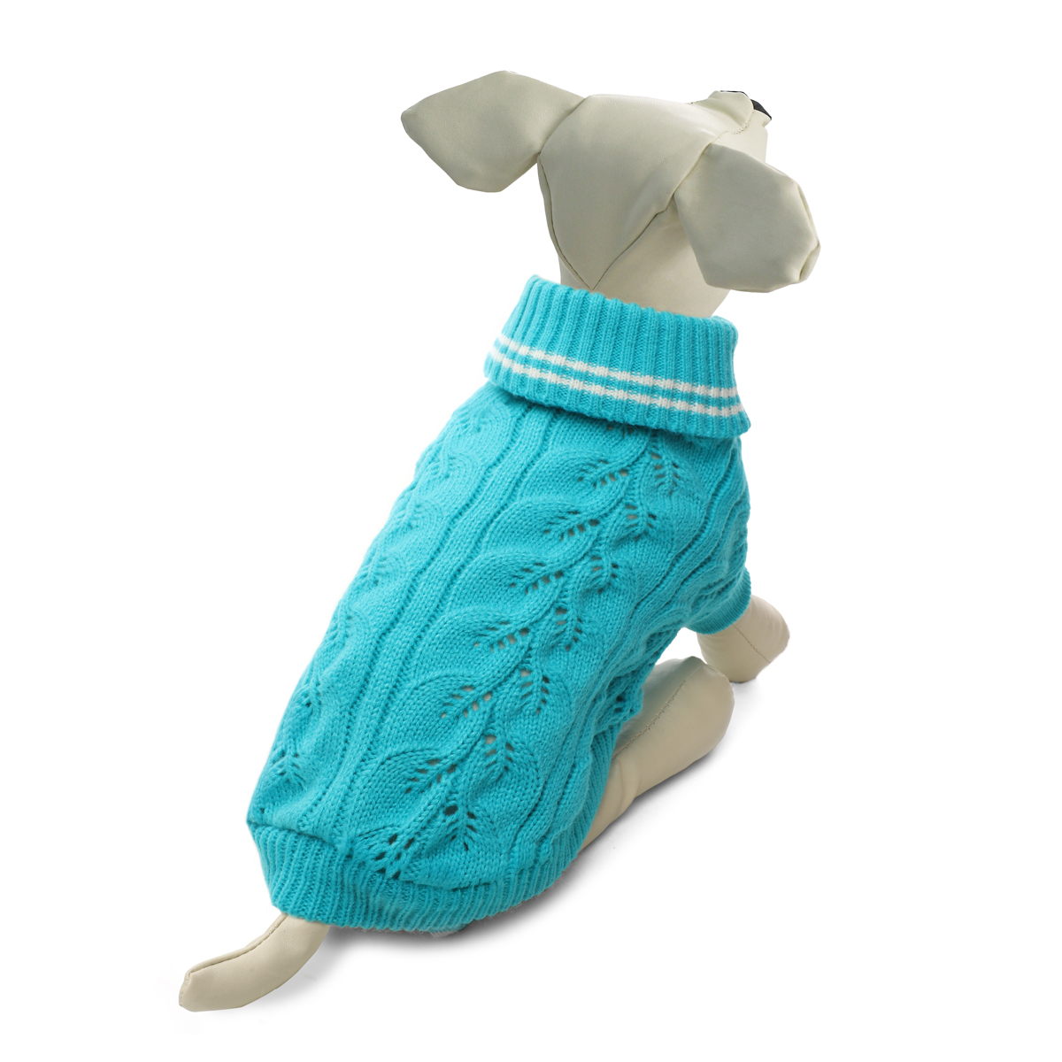 Свитер нежной расцветки и оригинальной вязки - это удобный и функциональный аксессуар для собак, который просто незаменим в холодную погоду. Изделие защитит вашего питомца от ветра и согреет в непогоду, а универсальный фасон не будет стеснять движений питомца во время прогулки. Такой свитер со стильным дизайном станет украшением гардероба вашего питомца. Материал: акрил. Цвет: бирюзовый. Размер: 20см (XS).