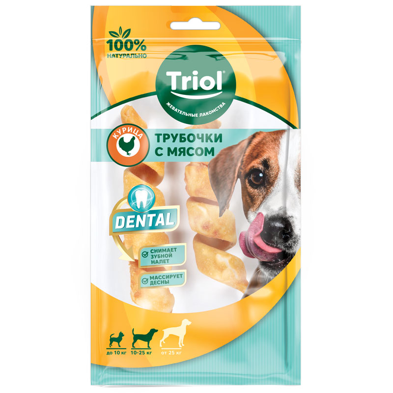 Трубочки витые жевательные с мясом курицы, 12,5см (уп.2шт.), серия DENTAL, Triol
