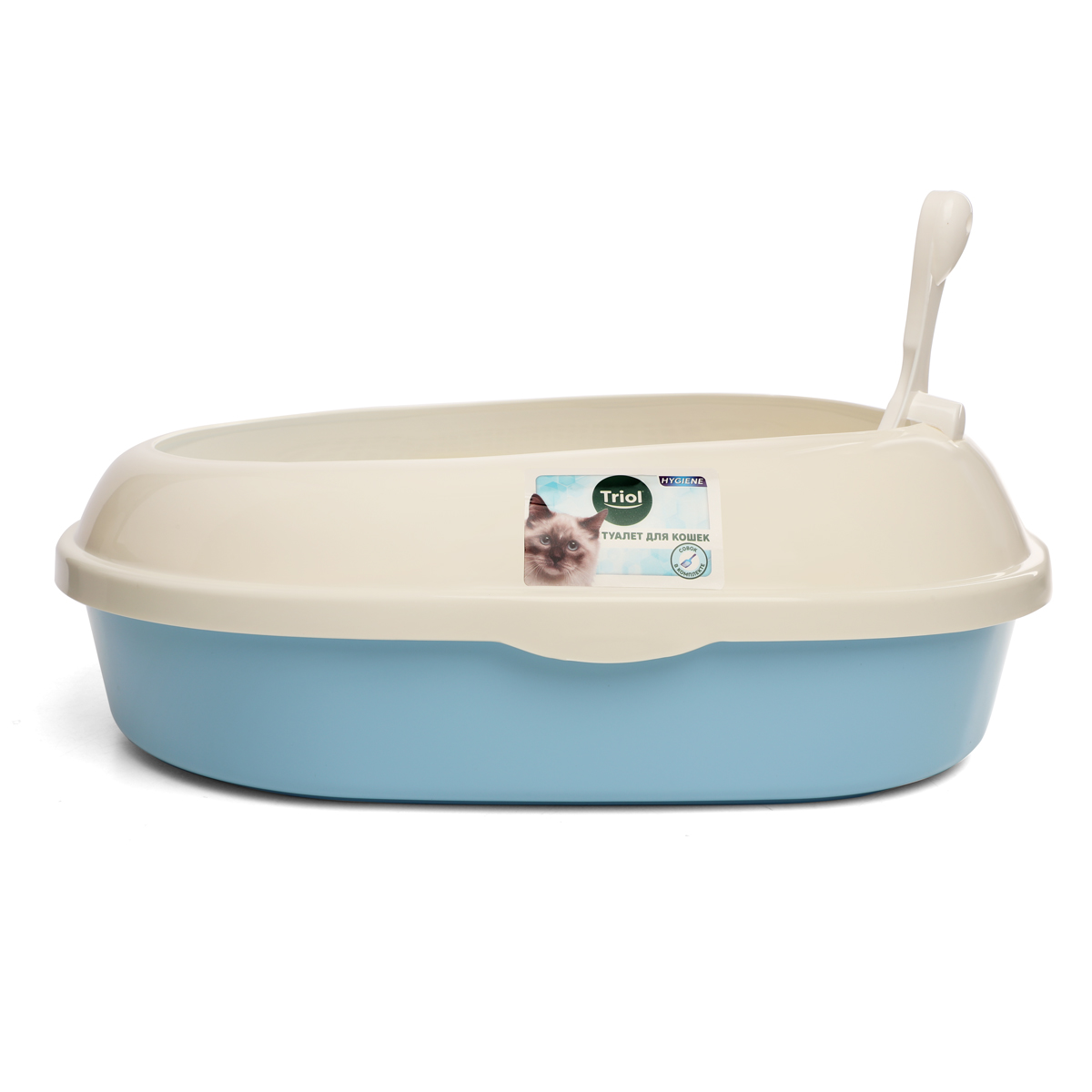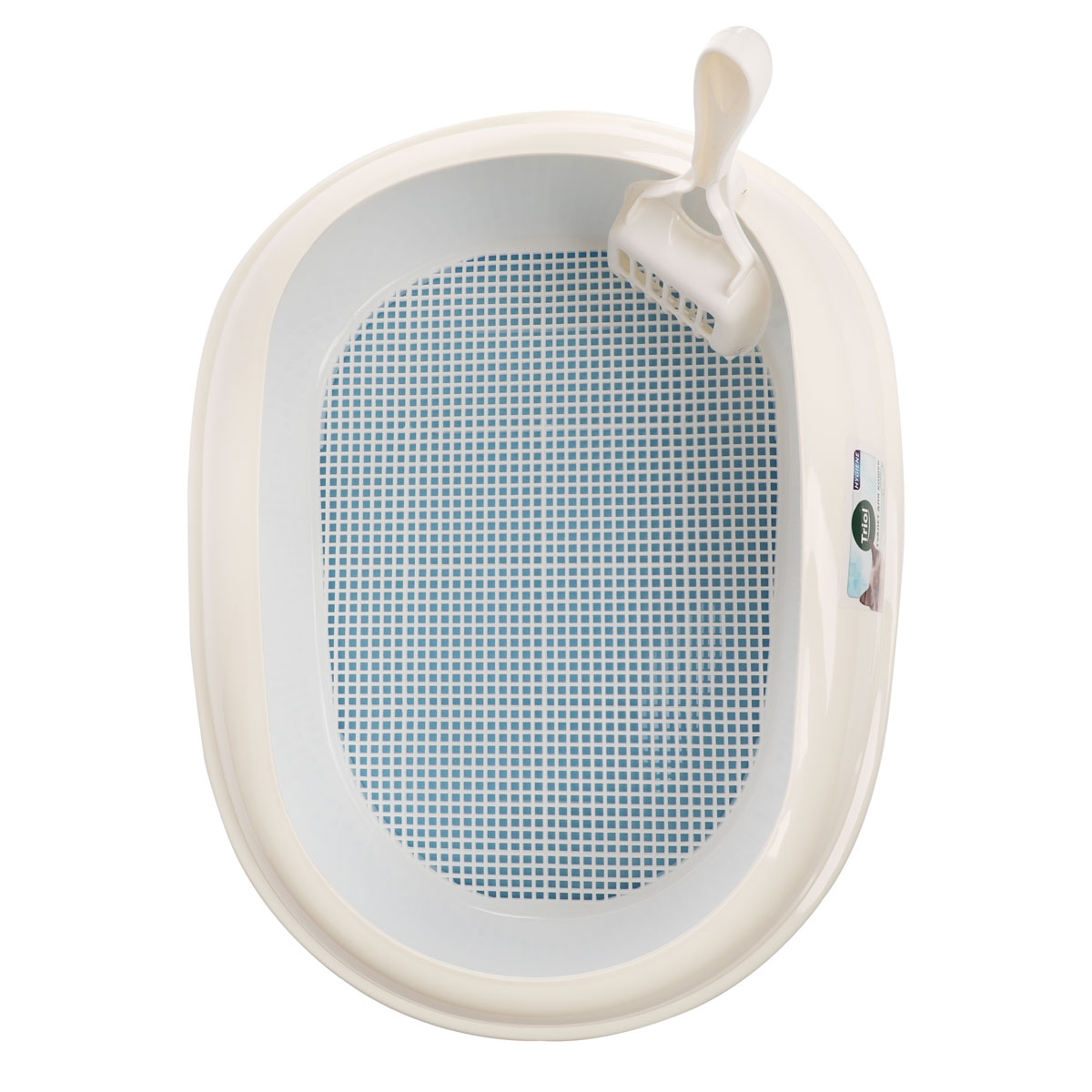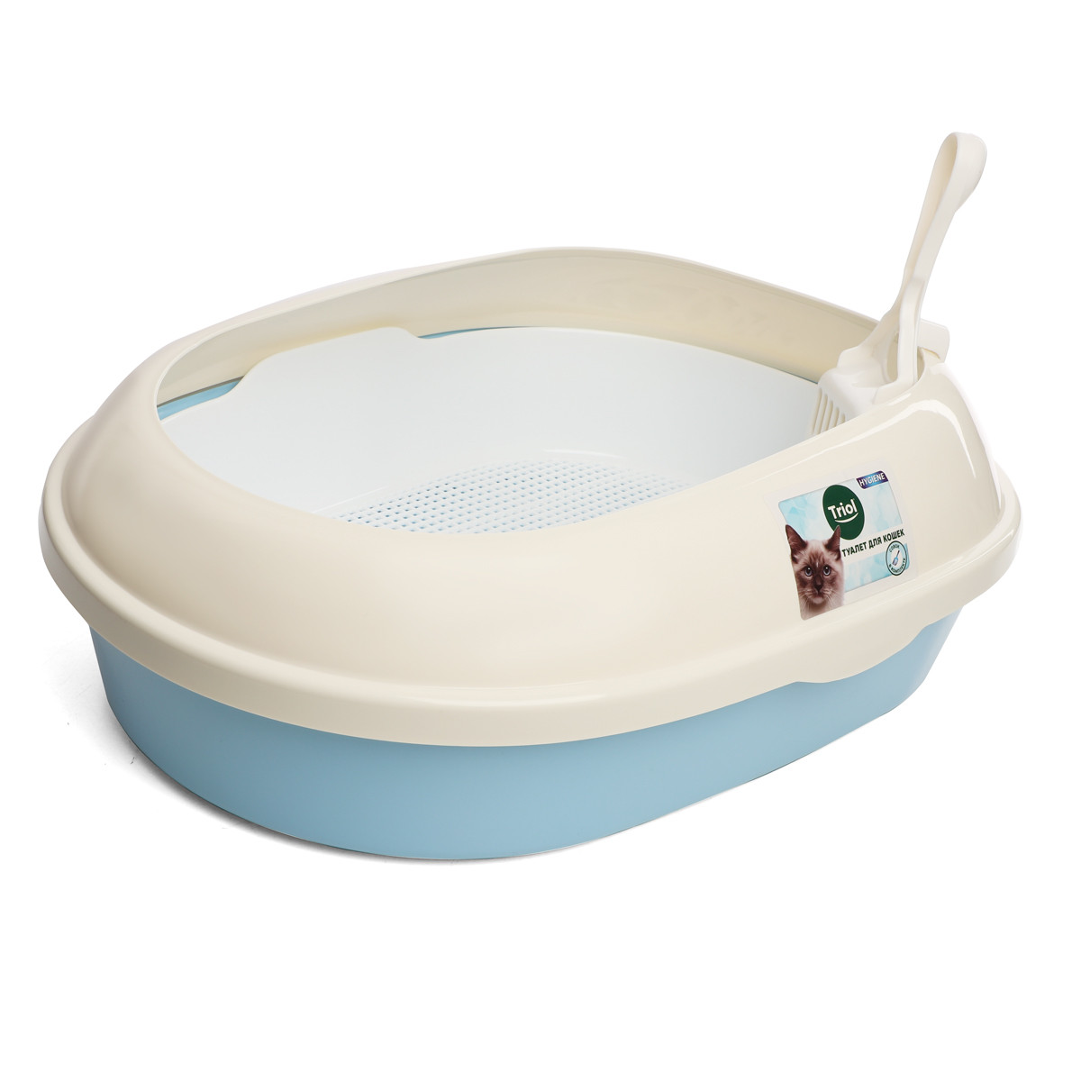 Туалет для кошек овальный с бортом "Эллипс" (совок и сетка в комплекте), голубой/белый, 500*370*170мм, серия HYGIENE, Triol