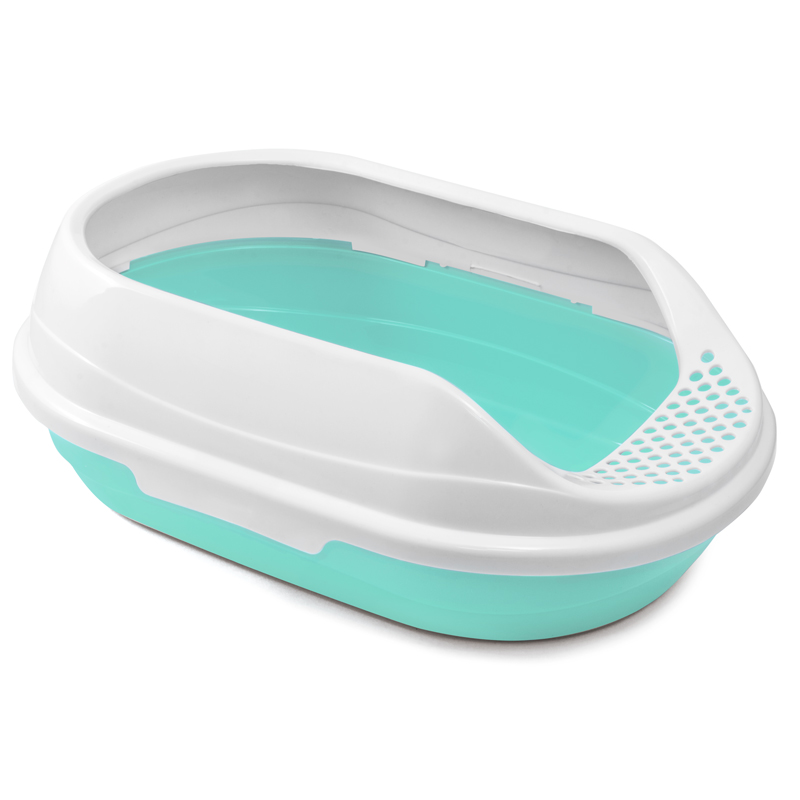 Туалет для кошек овальный с бортом "Ирис", бирюзовый/белый, 430*300*150мм, серия HYGIENE, Triol