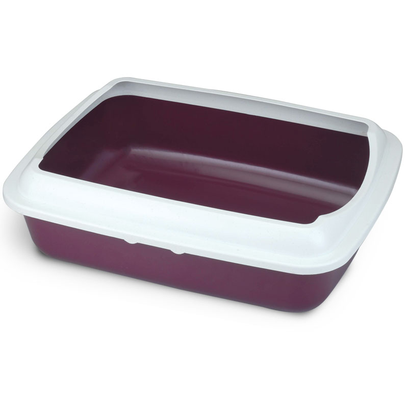Туалет для кошек прямоугольный с бортом "Параллель" , бургунди/белый, 505*390*150мм, серия HYGIENE, Triol