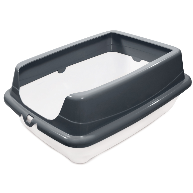 Туалет для кошек прямоугольный с высоким бортом "Пушок", белый/серый, 455*350*190мм
