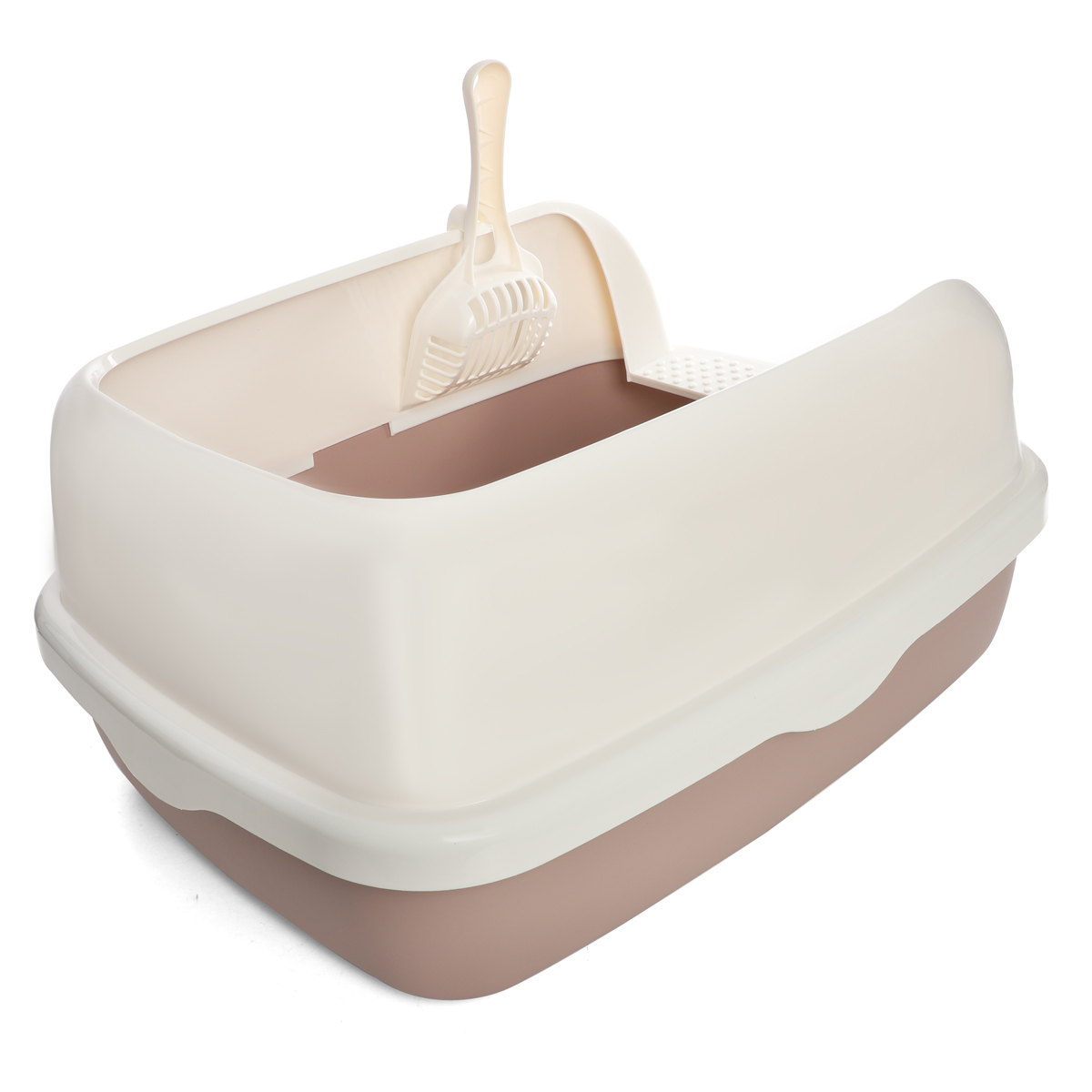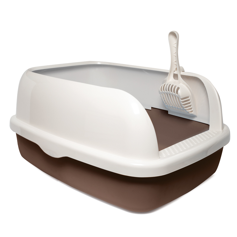 Туалет для кошек прямоугольный с бортом "Капучино" (совок и сетка в комплекте), коричневый/белый, 560*390*260мм, серия HYGIENE, Triol