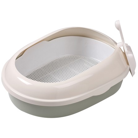 Туалет для кошек овальный с бортом "Эллипс" (совок и сетка в комплекте), оливковый/белый, 500*370*170мм, серия HYGIENE, Triol