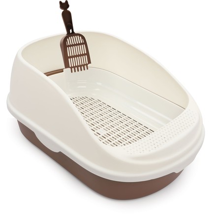 Туалет для кошек прямоугольный с бортом "Капучино" (совок и сетка в комплекте), коричневый/белый, 560*390*260мм, серия HYGIENE, Triol