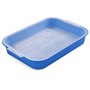 Туалет для кошек овальный с бортом, в комплекте с совком и сеткой. Очень удобный вариант, если вы еще не определили, что предпочитает ваша кошка. Лоток с сеткой идеально подходит питомцам, которые не любят наполнитель, но его необходимо мыть после каждого использования. А высокий борт - незаменимая вещь, если вы используете наполнитель. Благодаря высоким бортикам ваш пол останется чистым, а питомец не будет ограничен в удовлетворении своих инстинктов. Туалет изготовлен из износостойкого пластика, легко моется под струей воды и не впитывает запаха. Цвет поддона: голубой. Цвет борта: белый. Размер туалета: 500*370*170мм. Размер совка: 210*85*25мм.
