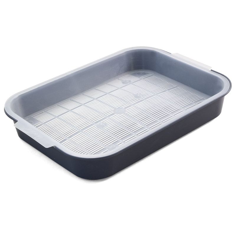 Туалет с прозрачной сеткой - универсальный аксессуар для вашего четвероногого питомца. Такая модель идеально подходит для кошек, не любящих наполнитель. Съемная прозрачная сетка максимально упрощает уборку, а компактные габариты изделия позволят разместить его где угодно с комфортом для животного. Туалет изготовлен из высококачественного пластика и легко чистится под струет воды при помощи моющих бытовых средств. Размеры изделия: 380х280х55мм. Цвета лотков: темно-оливковый, голубой, коралловый.
