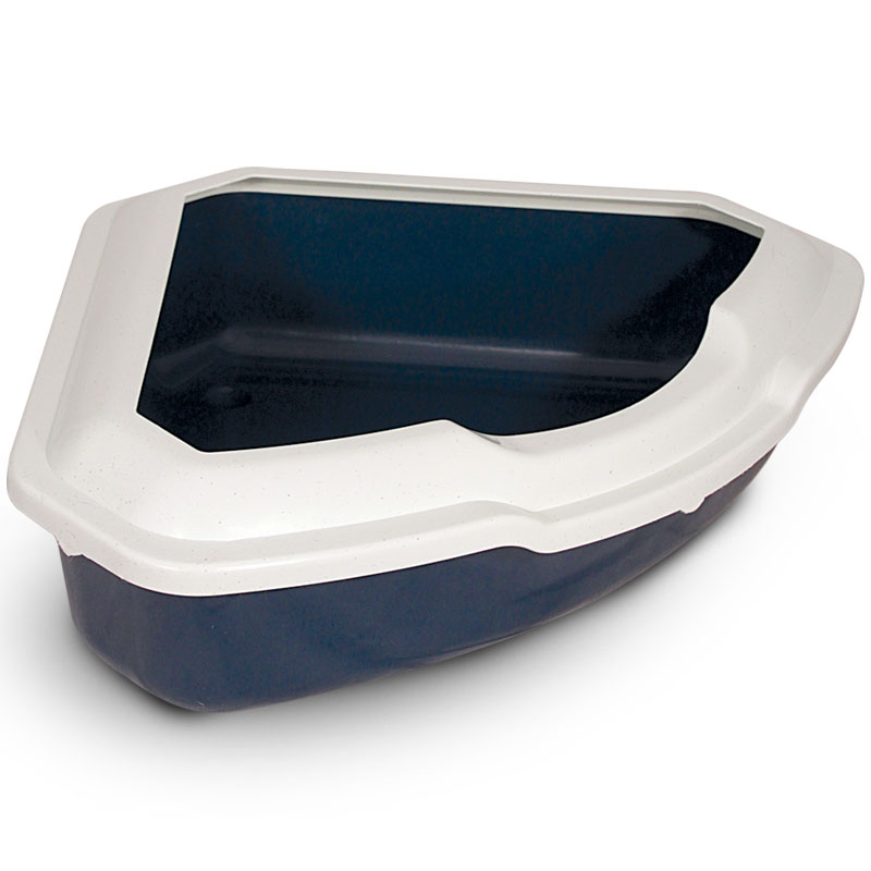 Туалет для кошек угловой с бортом "Пирамида", темно-синий/белый, 565*425*150мм, серия HYGIENE, Triol