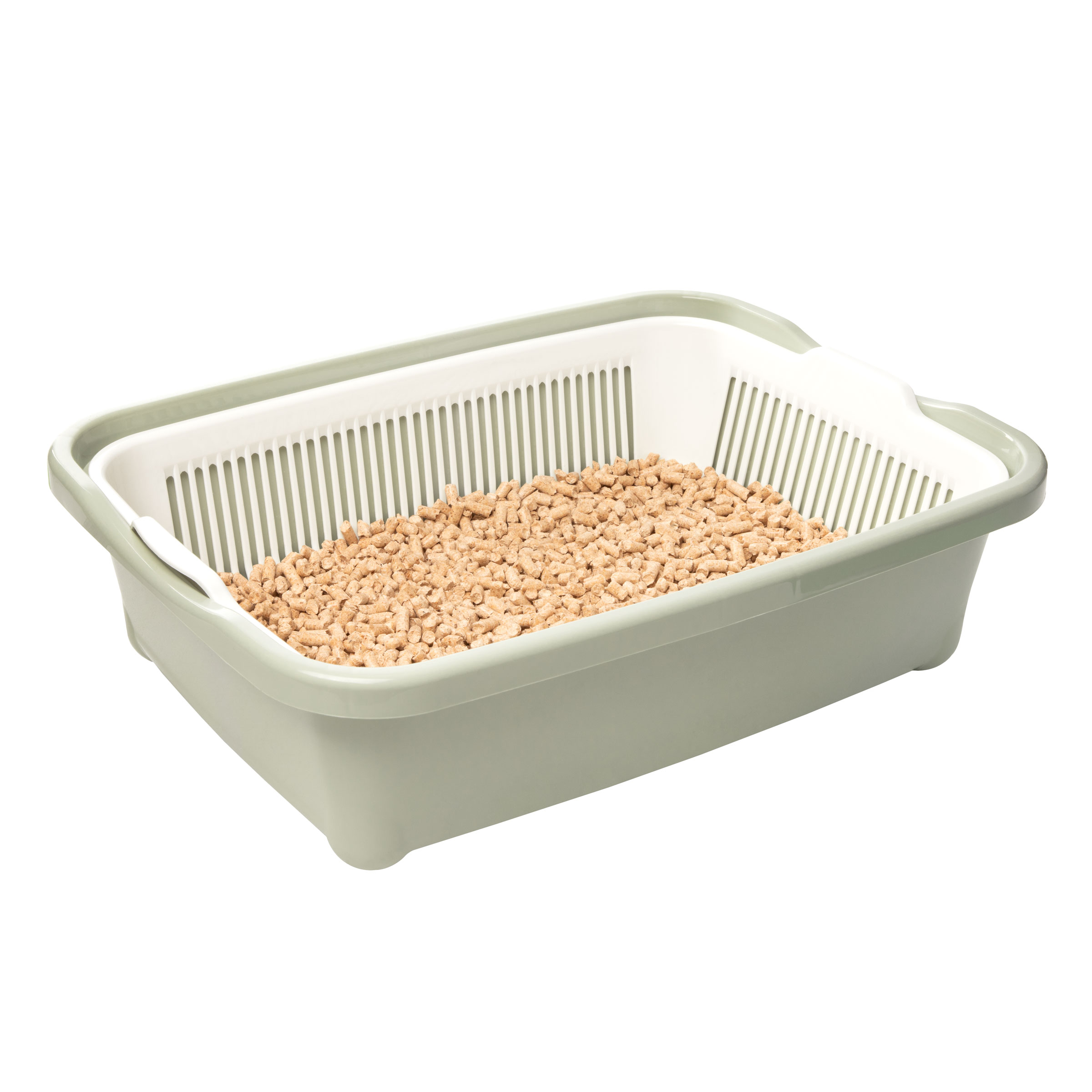 Туалет для кошек овальный с бортом "Эллипс" (совок и сетка в комплекте), оливковый/белый, 500*370*170мм, серия HYGIENE, Triol