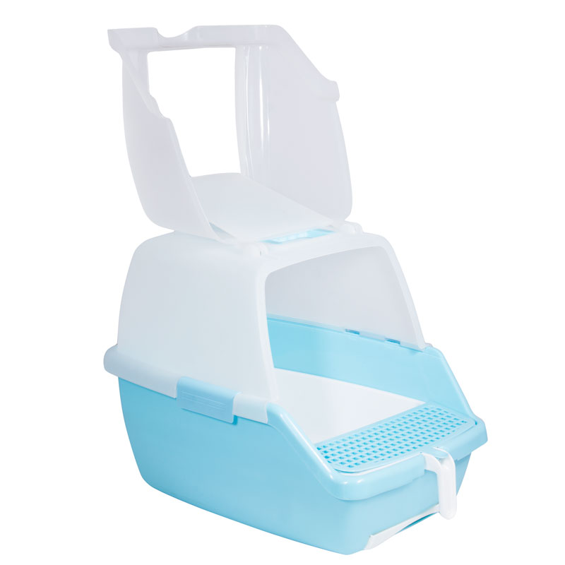 Туалет для кошек закрытый с выдвижным поддоном «Гранд» (совок и сетка в комплекте), голубой/белый, 550*400*420мм, серия HYGIENE, Triol