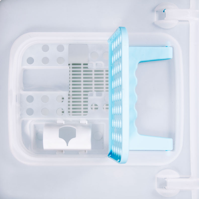 Откидная крышка – отличное решение для удобства уборки туалета. Функцию входа и выхода выполняет специальный коридор. Он предотвращает разбрасывание наполнителя и облегчает поддержание чистоты благодаря сетке снизу. Туалет изготовлен из износостойкого пластика и легко моется под струей воды при помощи моющих бытовых средств.