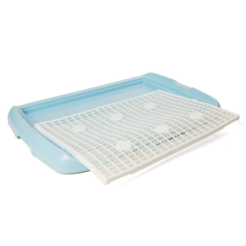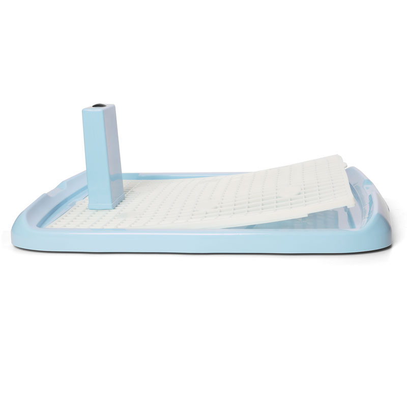 Туалет для маленьких собак, прямоугольный со столбиком. Съемный коврик позволит лапкам вашего питомца оставаться сухими. Цвет: голубой. Размер: 600*400*40мм; высота столбика: 165мм; размер ячейки сетки: 19*11мм.