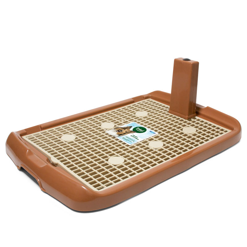 Туалет для маленьких собак, прямоугольный со столбиком. Съемный коврик позволит лапкам вашего питомца оставаться сухими. Цвет: коричневый. Размер: 700*470*40мм; высота столбика: 165мм; размер ячейки сетки: 19*11мм.