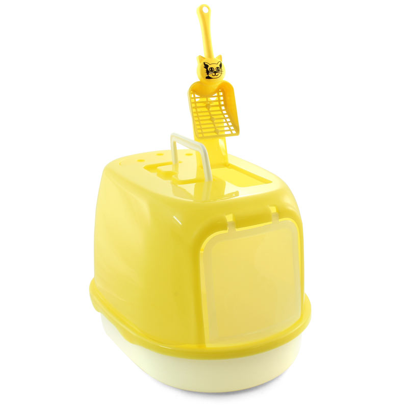 Туалет для кошек закрытый со сменным угольным фильтром, совком и ароматизированными гранулами в комплекте. Туалет-бокс – это не просто стильный, но и функциональный аксессуар для владельцев пушистых питомцев. Такой туалет прекрасно удерживает запах благодаря сменному угольному фильтру, а закрывающаяся дверца предотвращает рассыпание наполнителя за пределы лотка. Туалет изготовлен из износостойкого пластика и легко моется под струей воды. Цвет поддона: белый. Цвет бокса: салатовый, желтый. Размер туалета: 500*350*340мм. Размер совка: 250*95*30мм.