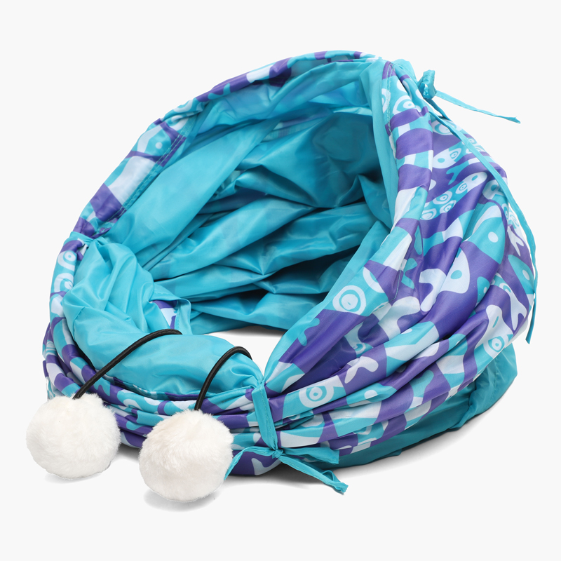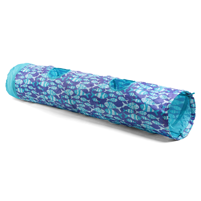 Нейлоновый игровой туннель для кошек "Рыбки" яркой расцветки. Мягкий, просторный, шуршащий и очень теплый, такой туннель станет не только прекрасным аксессуаром для активной игры, но и отличным местом для отдыха после интенсивных "кардионагрузок". Форма изделия держится, благодаря прочному металлическому каркасу, выход может быть затянут на тесемку, а 2 окошка "для наблюдения и охоты" и помпончик на резинке станут дополнительными элементами для увлекательной игры. Размер изделия d250х1300мм. При этом в сложенном виде такой туннель совсем не занимает места.