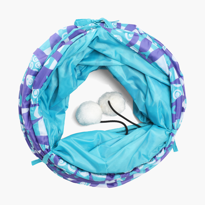 Нейлоновый игровой туннель для кошек контрастной расцветки. Мягкий, просторный, шуршащий и очень теплый, такой туннель станет не только прекрасным аксессуаром для активной игры, но и отличным местом для отдыха после интенсивных "кардионагрузок". Форма изделия держится, благодаря прочному металлическому каркасу, выход может быть затянут на тесемку, а окошко "для наблюдения и охоты" и пушистая игрушка на резинке станут дополнительными элементами для увлекательной игры. Размер изделия d250х900мм. При этом в сложенном виде такой туннель совсем не занимает места.