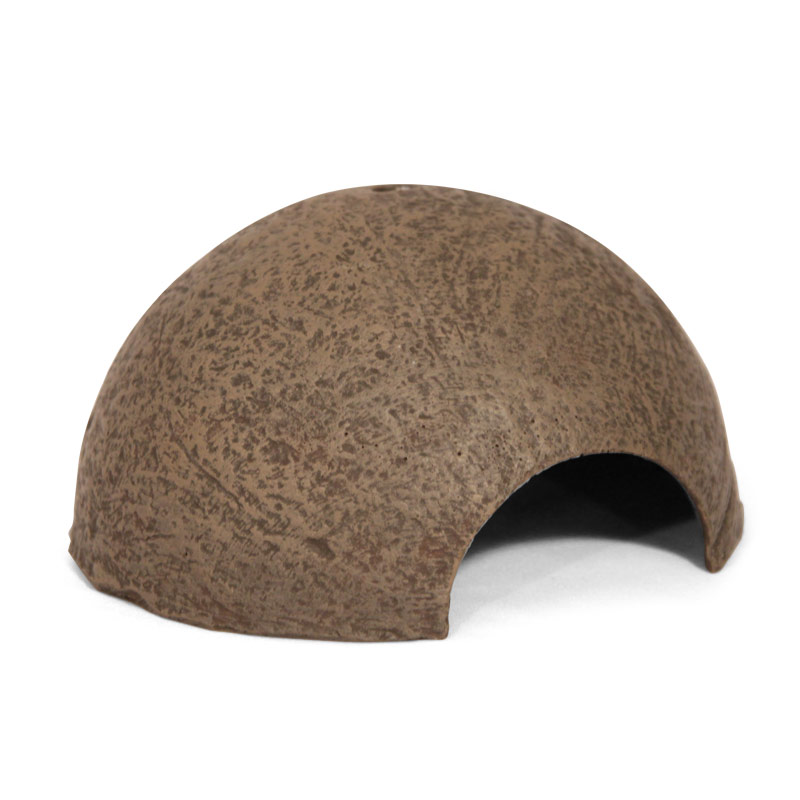 Укрытие изготовлено из нетоксичной полиэфирной смолы (прочный пластик) и выполнено в реалистичной манере в виде каменной пещерки. Используется для создания укромного места, а также как укрытие от повышенной температуры, создаваемой лампами накаливания. Укрытие прекрасно подойдет для любых террариумных животных, исключая черепах, а также для насекомых и членистоногих.