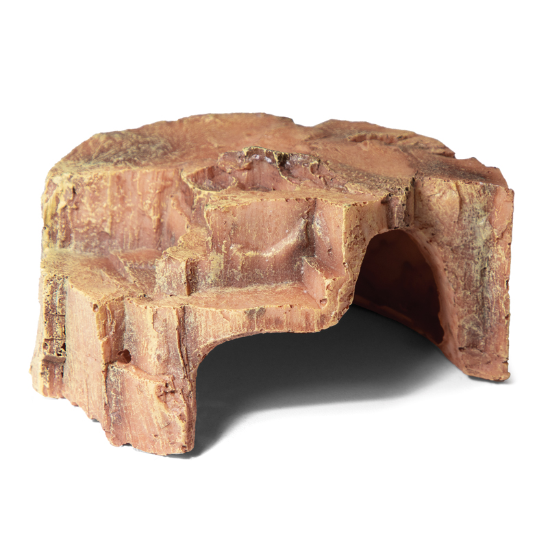 Укрытие изготовлено из нетоксичной полиэфирной смолы (прочный пластик) и выполнено в реалистичной манере в виде каменной пещерки. Используется для создания укромного места, а также как укрытие от повышенной температуры, создаваемой лампами накаливания. Укрытие прекрасно подойдет для любых террариумных животных, исключая черепах, а также для насекомых и членистоногих.
