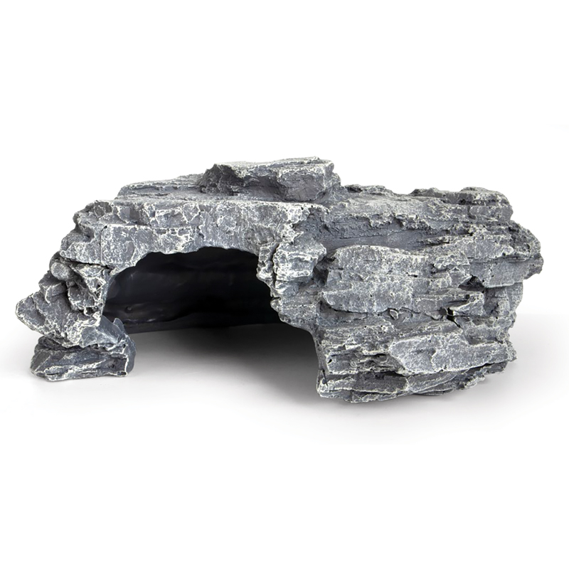 Укрытие изготовлено из нетоксичной полиэфирной смолы (прочный пластик) и выполнено в реалистичной манере в виде каменной пещерки. Используется для создания укромного места, а также как укрытие от повышенной температуры, создаваемой лампами накаливания. Укрытие прекрасно подойдет для любых террариумных животных, исключая черепах, а также для насекомых и членистоногих.