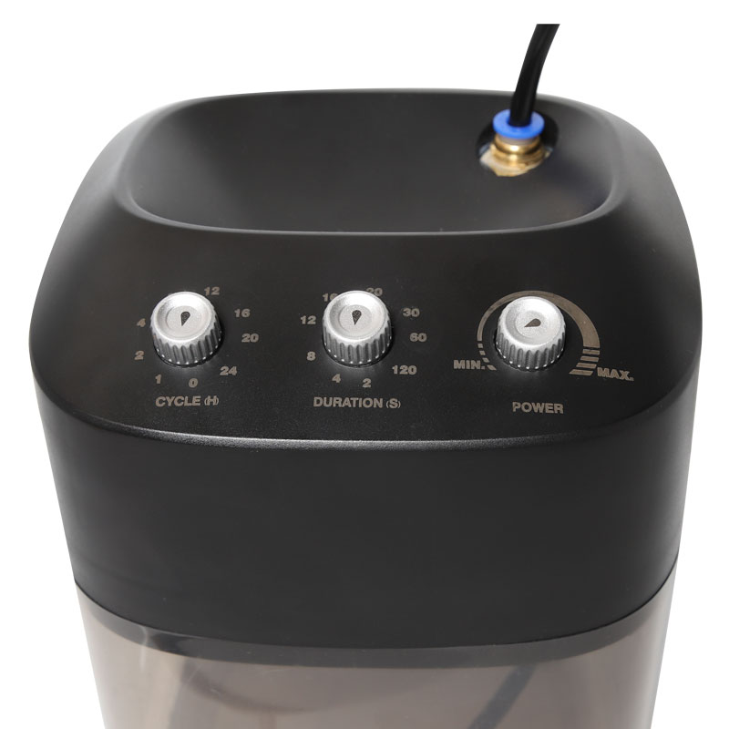Устройство для увеличения влажности воздуха. Устанавливается вне террариума, влага подается по шлангу (длина шланга 180см). Можно использовать как комнатный увлажнитель воздуха.