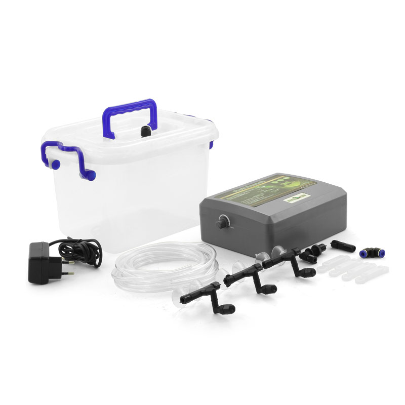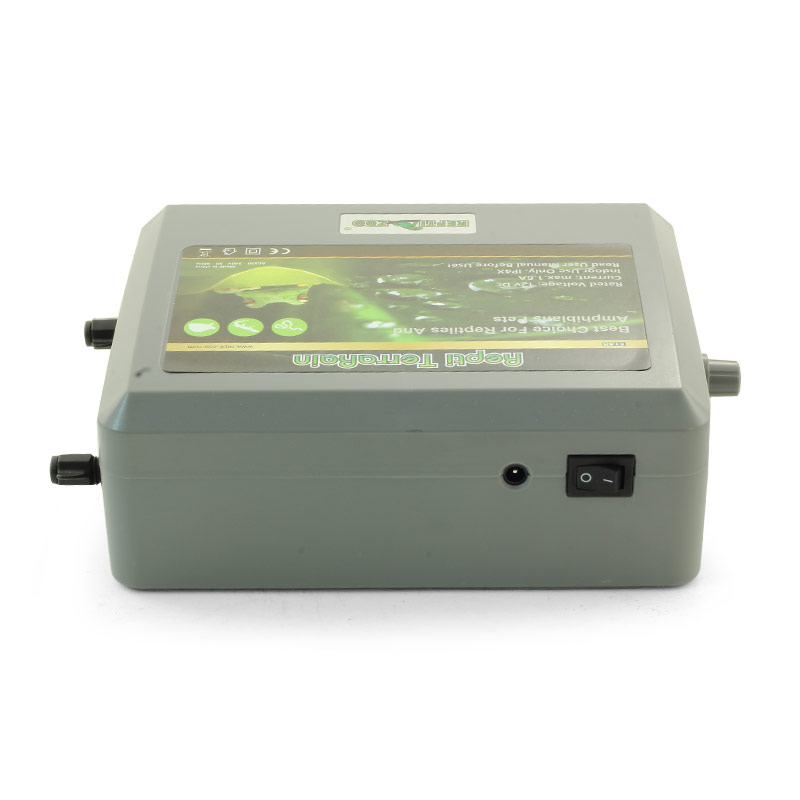 Устройство для увеличения влажности воздуха. Устанавливается вне террариума, влага подается по шлангу (длина шланга 180см). Можно использовать как комнатный увлажнитель воздуха.