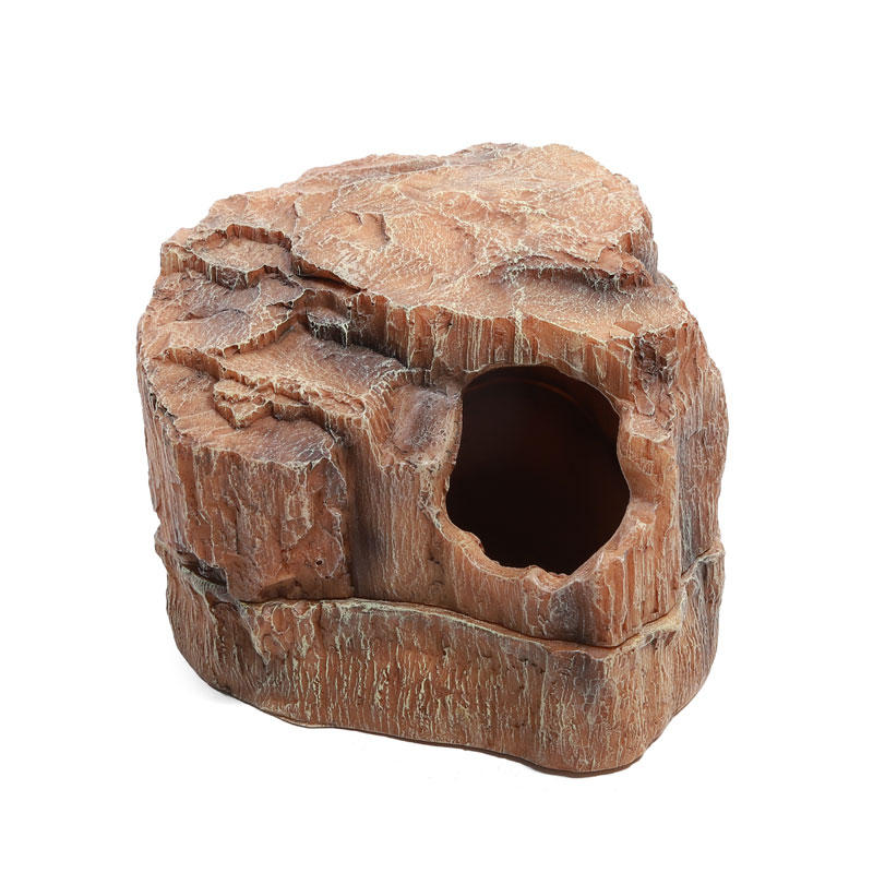 Укрытие изготовлено из нетоксичной полиэфирной смолы (прочный пластик) и выполнено в реалистичной манере в виде каменной пещерки. Используется для создания укромного места, а также как укрытие от повышенной температуры, создаваемой лампами накаливания. Укрытие прекрасно подойдет для любых террариумных животных, исключая черепах, а также для насекомых и членистоногих.