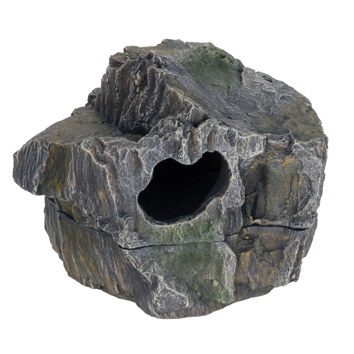 Укрытие изготовлено из нетоксичной полиэфирной смолы (прочный пластик) и выполнено в реалистичной манере в виде каменной пещерки. Используется для создания укромного места, а также как укрытие от повышенной температуры, создаваемой лампами накаливания. Укрытие прекрасно подойдет для любых террариумных животных, исключая черепах, а также для насекомых и членистоногих.