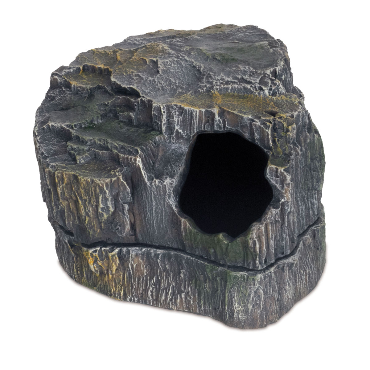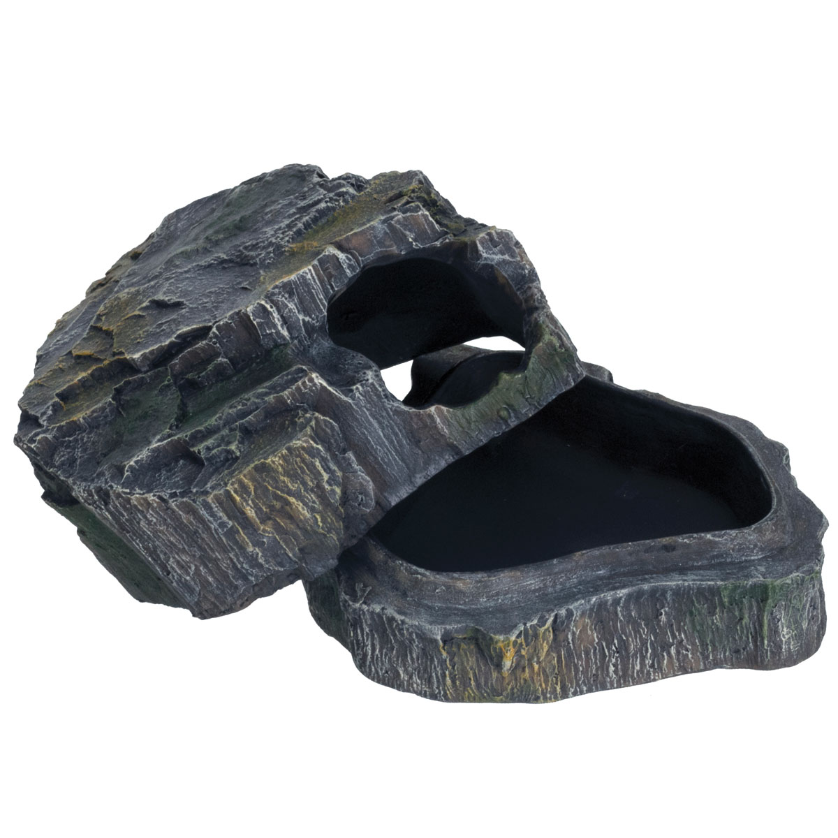 Укрытие изготовлено из нетоксичной полиэфирной смолы (прочный пластик) и выполнено в реалистичной манере в виде каменной пещерки. Используется для создания укромного места, а также как укрытие от повышенной температуры, создаваемой лампами накаливания. Укрытие прекрасно подойдет для любых террариумных животных, исключая черепах, а также для насекомых и членистоногих.