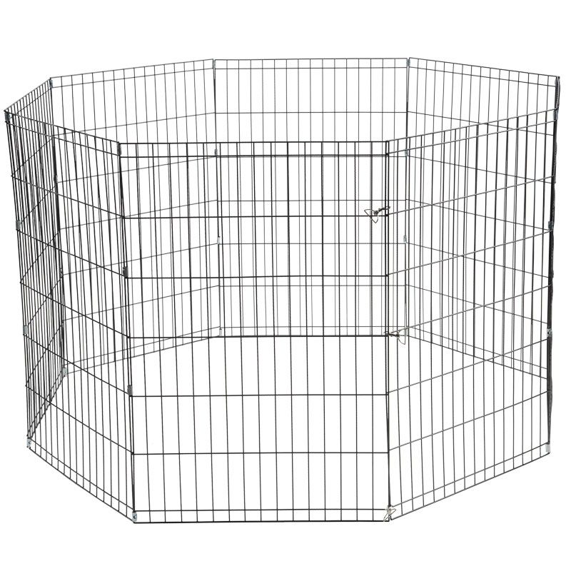 Вольер эмалированный для животных. Размер между прутьями 37,9мм. В комплекте 8 секций. Секции соединены между собой при помощи металлических скоб. Предназначен для кошек, собак, кроликов и других животных. Вольер идеально подходит для отдыха на природе и ограничения передвижения по квартире. Цвет прутьев: черный. Размер одной секции: 610*915мм.