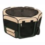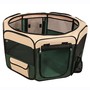 Удобный складной матерчатый вольер-тент - универсальное решение для владельцев собак. Его можно использовать как на улице, так и в помещении в качестве основного места для собаки. Незаменимым атрибутом дом-тент является для владельцев собак на выставках и при перевозке во время длительных путешествий. Дополнительная сетка (идет в комплекте) не дает возможности животному выбраться, а вшитая металлическая конструкция в разложенном виде крепко натягивает ткань, обеспечивая изделию максимальную устойчивость. Изделие имеет удобное отделение для поилки, съемная сетчатая крыша позволяет питомцу свободно дышать, а непромокаемое дно надежно фиксируется при помощи липучек и легко стирается в стиральной машине. Цвет: бежево-зеленый. Размер: 1800х1800х770мм