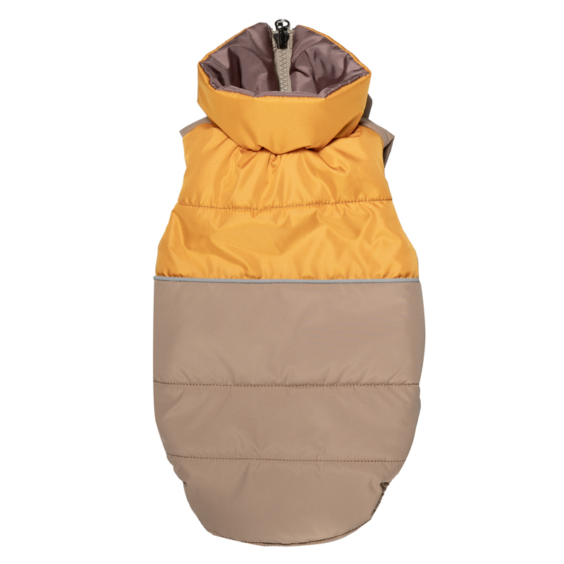 Стильная двухсторонняя жилетка "Кэмел" с оригинальным принтом изготовлена из современной курточной ткани, которая эффективно отталкивает влагу, не пропускает ветер, не боится сильных морозов и ярких солнечных лучей. Жилетка имеет специальную молнию с перекедным бегунком, застегивающуюся на обе стороны, светоотражающий элемент, а также специальные вставки из резинок, что позволяет изделию плотно сидеть на собаке. Цвет: бежевый. Длина спины: 460мм; обхват груди: 590мм.