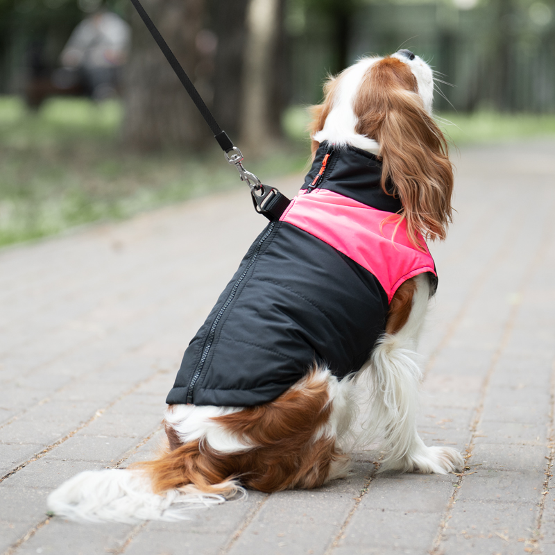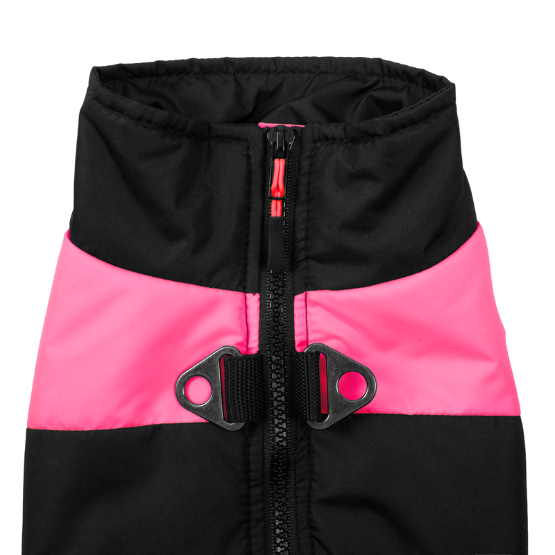 Удобный и функциональный жилет "Неон" выполнен из водоотталкивающей и ветронепроницаемой ткани, которая защитит питомца от холода и грязи. Застежка-молния на спине максимально облегчает одевание питомца, а два кольца для крепления поводка позволяют обойтись без дополнительной амуниции. Контрастная расцветка изделия сделает собаку яркой и заметной на улицах города. Размер: длина спины 340 мм, обхват груди 450 мм. Цвет: чёрно-розовый.