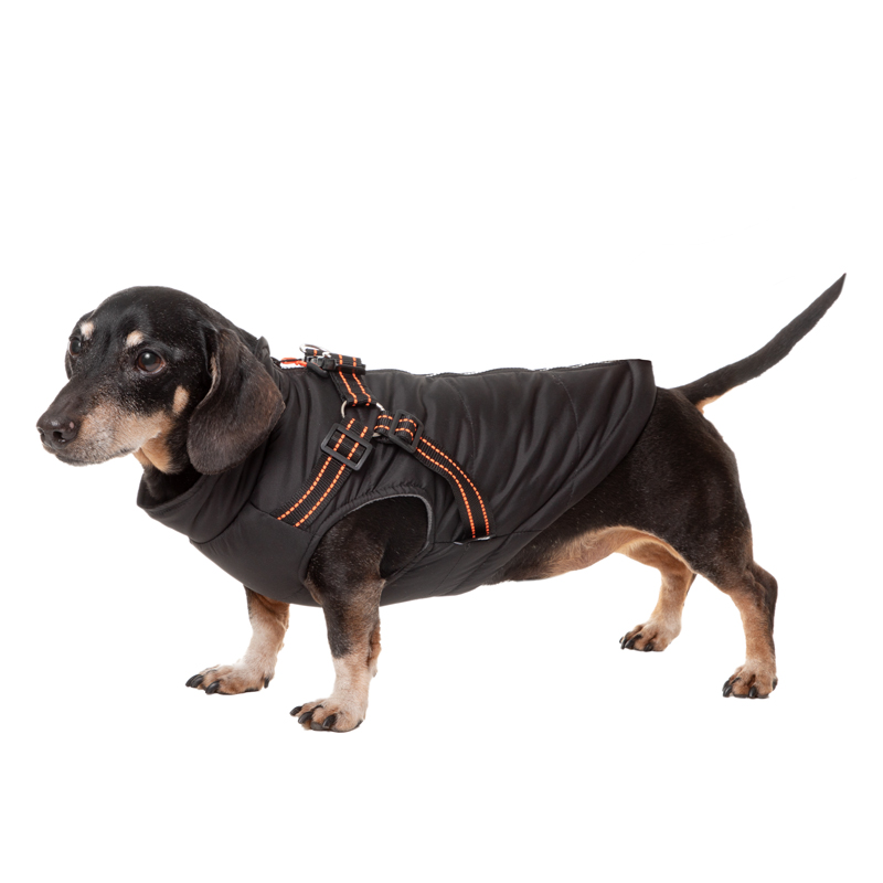 Удобный и функциональный жилет на теплой подкладке из флиса "Спорт" выполнен из водоотталкивающей и ветронепроницаемой ткани, которая защитит питомца от холода и грязи. Застежка-молния на спине максимально облегчает одевание питомца, а два кольца для крепления поводка позволяют обойтись без дополнительной амуниции. Размер: длина спины 340 мм, обхват груди 500 мм. Цвет: черно-оранжевый.
