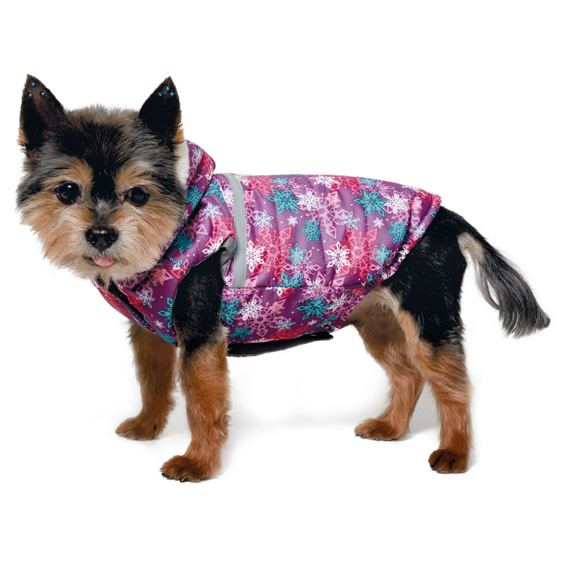 Стильная утепленная попона "Морозко" с меховым капюшоном и светоотражающей лентой для комфортных прогулок даже в самые морозные дни. Застегивается при помощи заклепок на животе. Подходит для собак мелких и средних пород. Длина спины: 220мм; обхват груди: 330мм